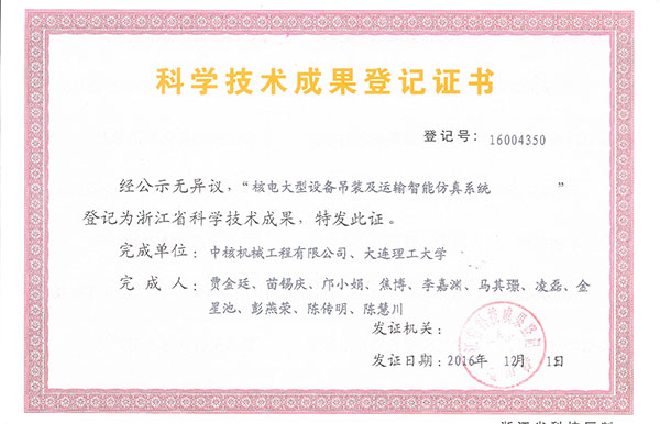 • 科技成果登記證書