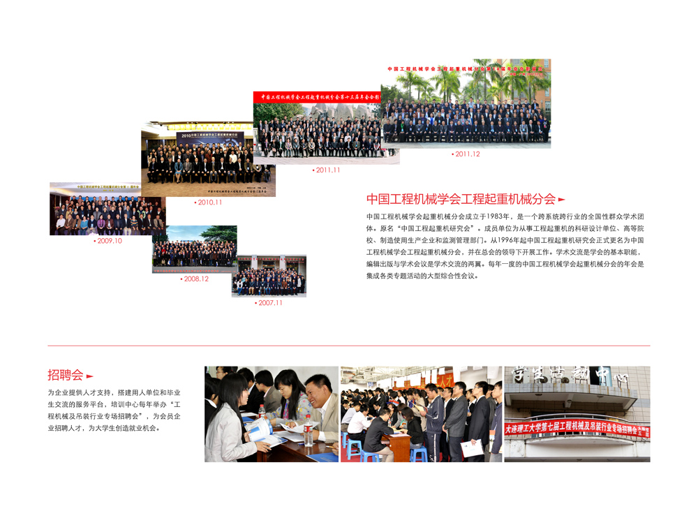 大連益利亞咨詢有限公司先后成功承辦中國工程機械學(xué)會工程起重機械分會第9~17屆年會、多屆大連理工大學(xué)機械及吊裝行業(yè)專場招聘會、起重機結(jié)構(gòu)高等分析研討會、國家標(biāo)準(zhǔn)GB/T 3811-2008《起重機設(shè)計規(guī)范》宣貫會、組建“工程起重機械產(chǎn)業(yè)技術(shù)創(chuàng)新戰(zhàn)略聯(lián)盟”專題研討會、工程機械博士論壇等會議。
